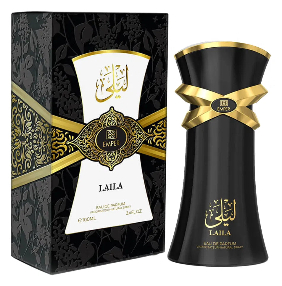 Laila perfume for women by Emper is an enchanting fragrance that captures the essence of femininity and elegance. This 100ML bottle houses a captivating blend of floral and fruity notes, perfectly balanced to evoke a sense of allure and sophistication. The top notes of fresh bergamot and sweet peach instantly uplift your mood, while the heart reveals a delicate bouquet of jasmine and peony, adding a romantic charm. As it settles, warm base notes of creamy vanilla and soft musk envelop you in a lingering, unforgettable embrace. Ideal for daily wear or special occasions, Laila is the ultimate expression of grace and confidence, inviting you to embrace every moment with poise and beauty. Indulge your senses and make your presence unforgettable with Laila perfume.